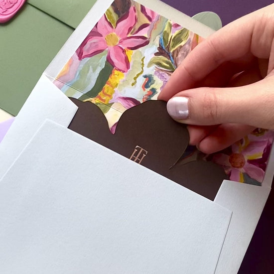 The Floral Silhouette Save the Date is a sister collection to the original Abstract Bloom series, reimagined with a more sculptural, minimal feel. Choose your base card colour, foil shade and envelope colour - upgrade your collection by adding a Abstract Bloom envelope liner + wax seal (see below).
